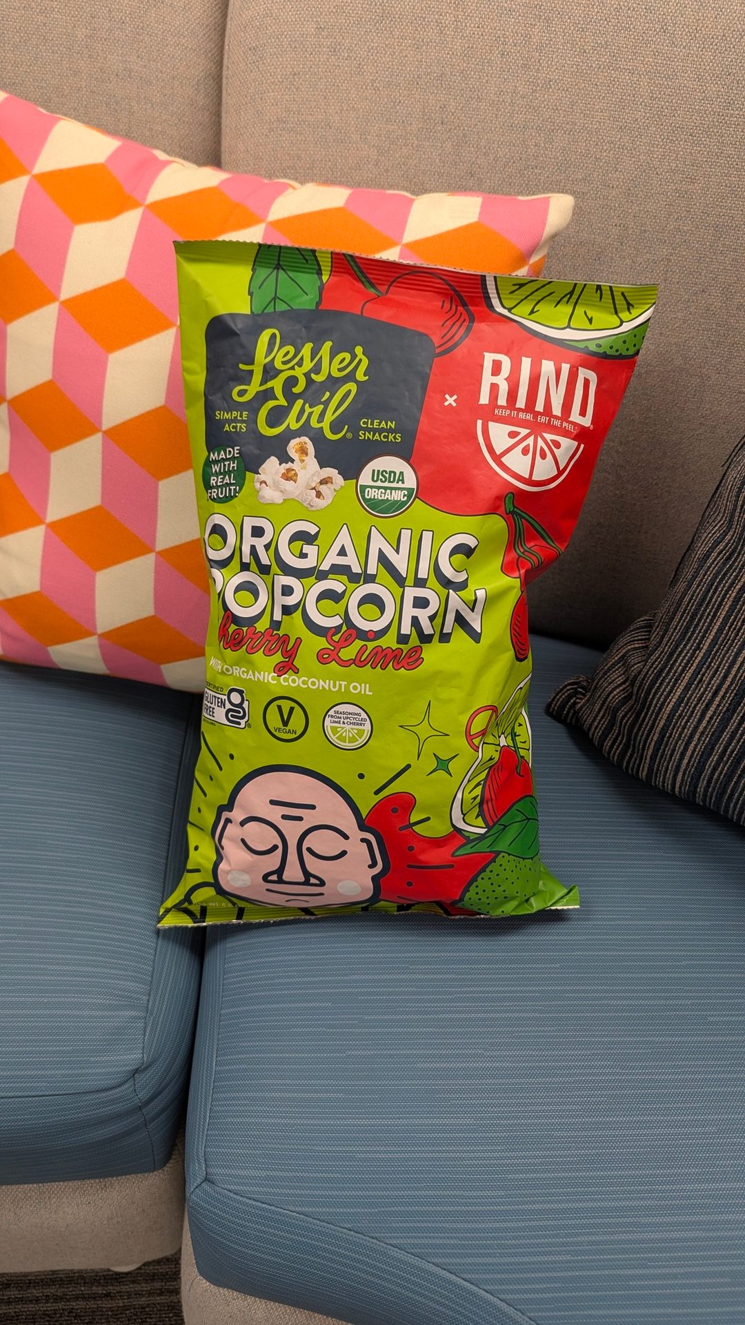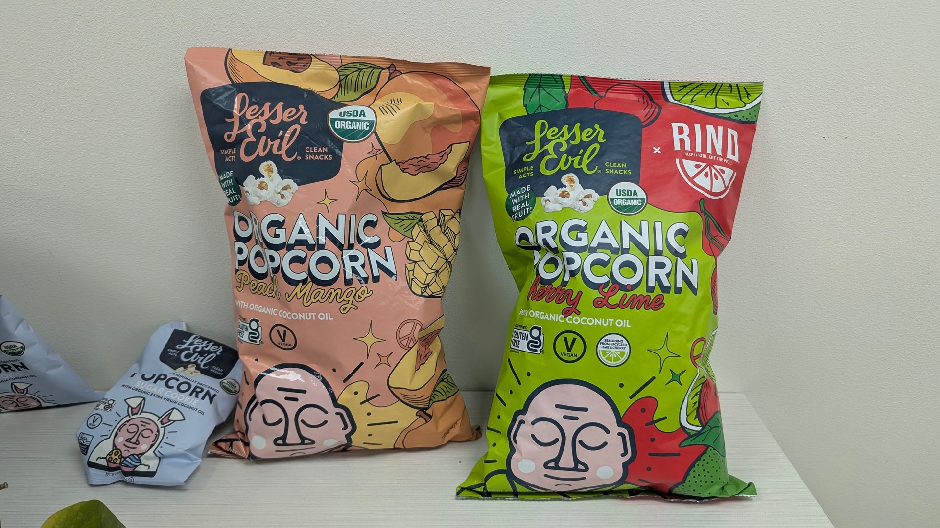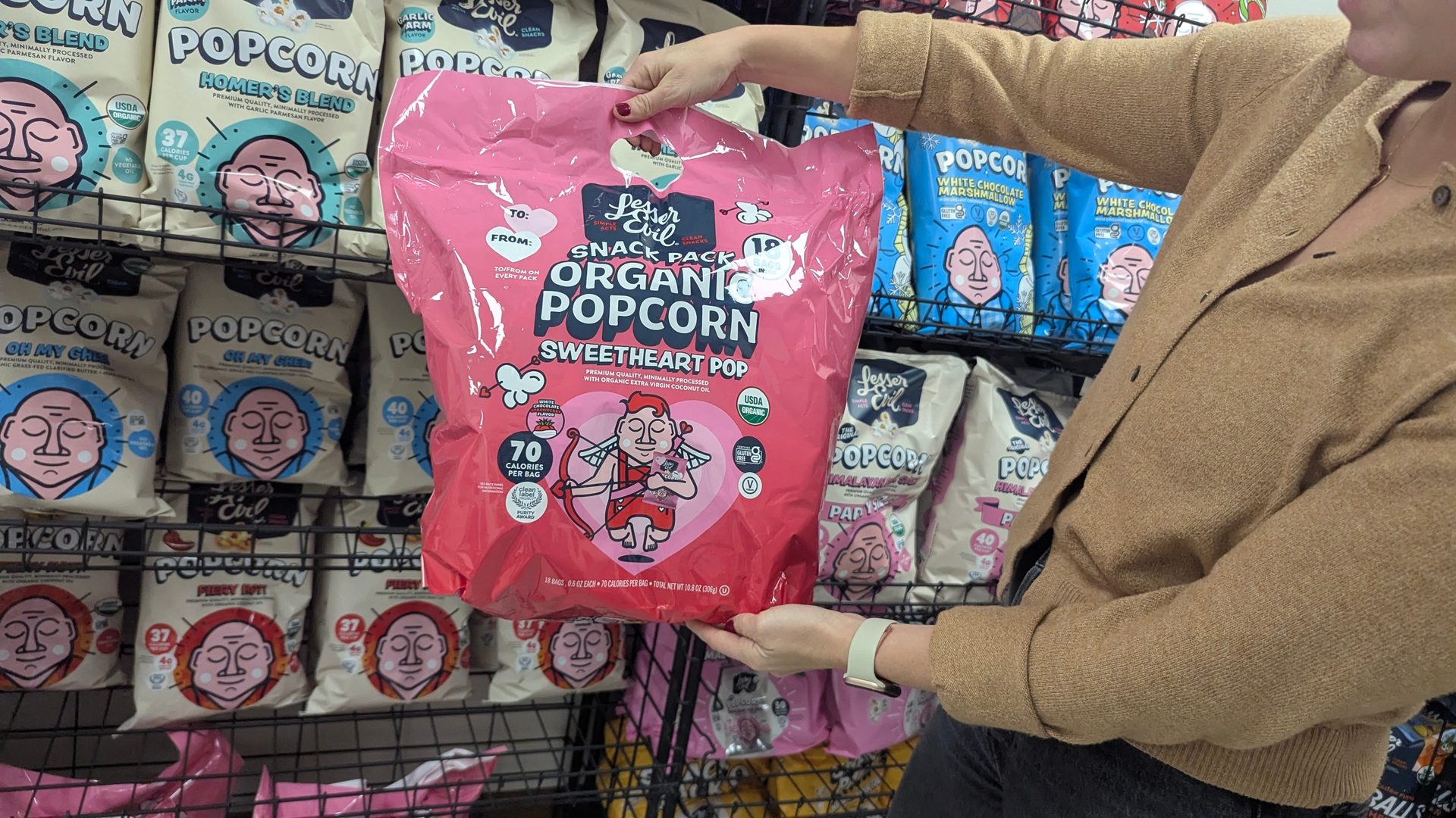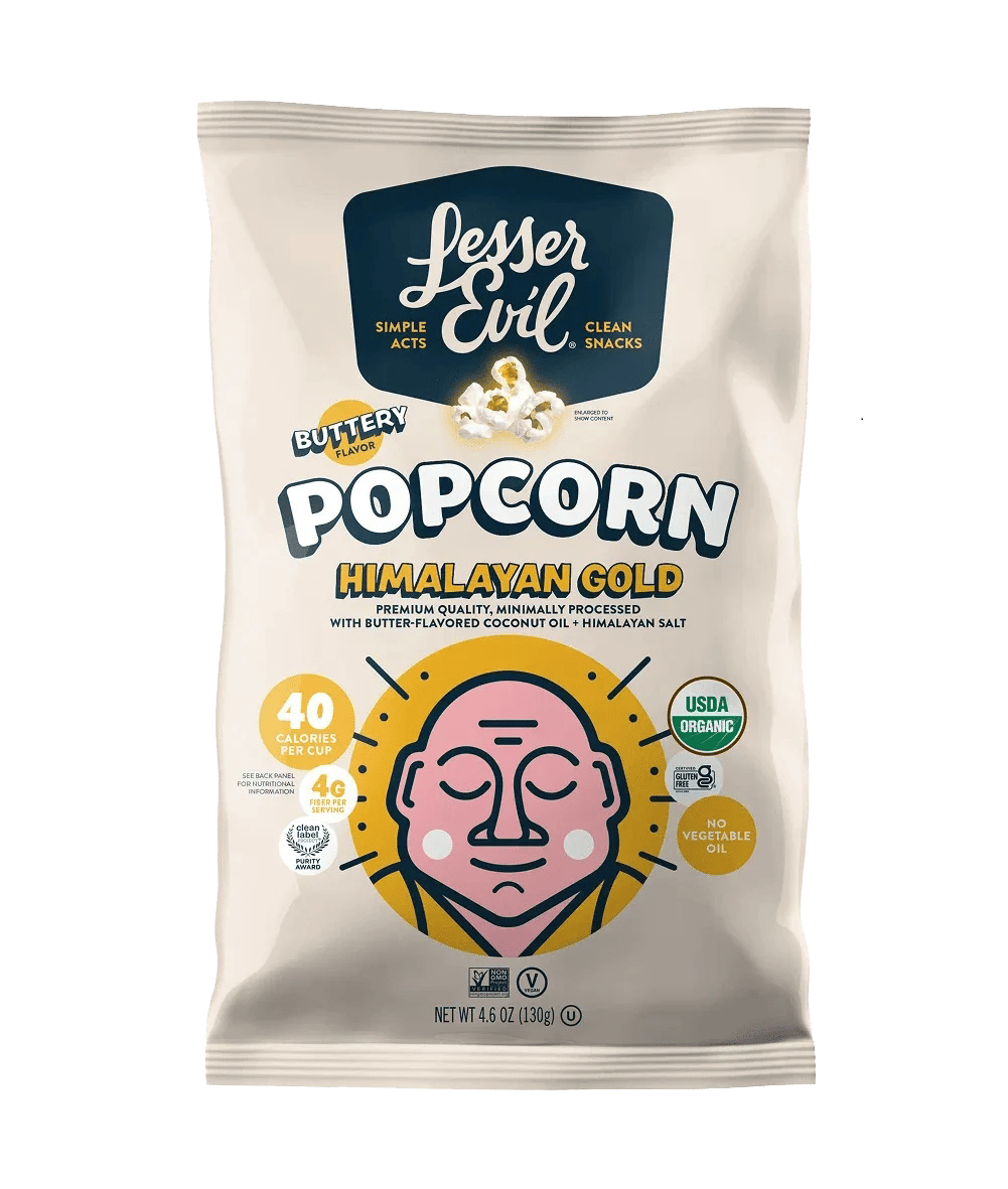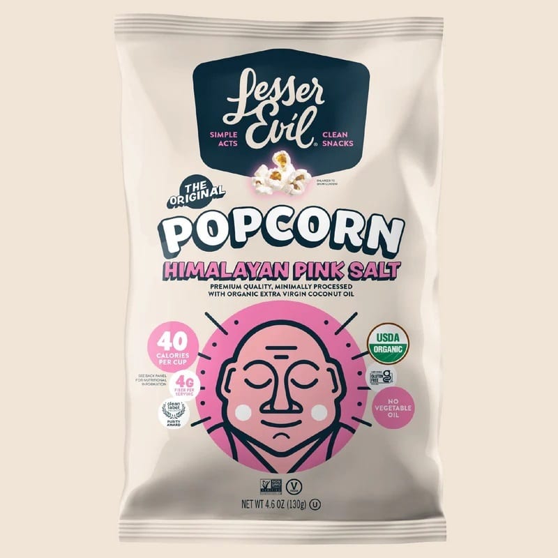 In addition to more traditional flavors like cheddar cheese, Himalayan salt, and spicy varieties, LesserEvil’s R&D team has come out with more unexpected tastes, including sweet popcorn with summery flavors like Pink Lemonade and Watermelon Hibiscus—flavors inspired by trendy seltzer flavors. Coristine says the team likes to brainstorm and run with the unique ideas they come up with.
