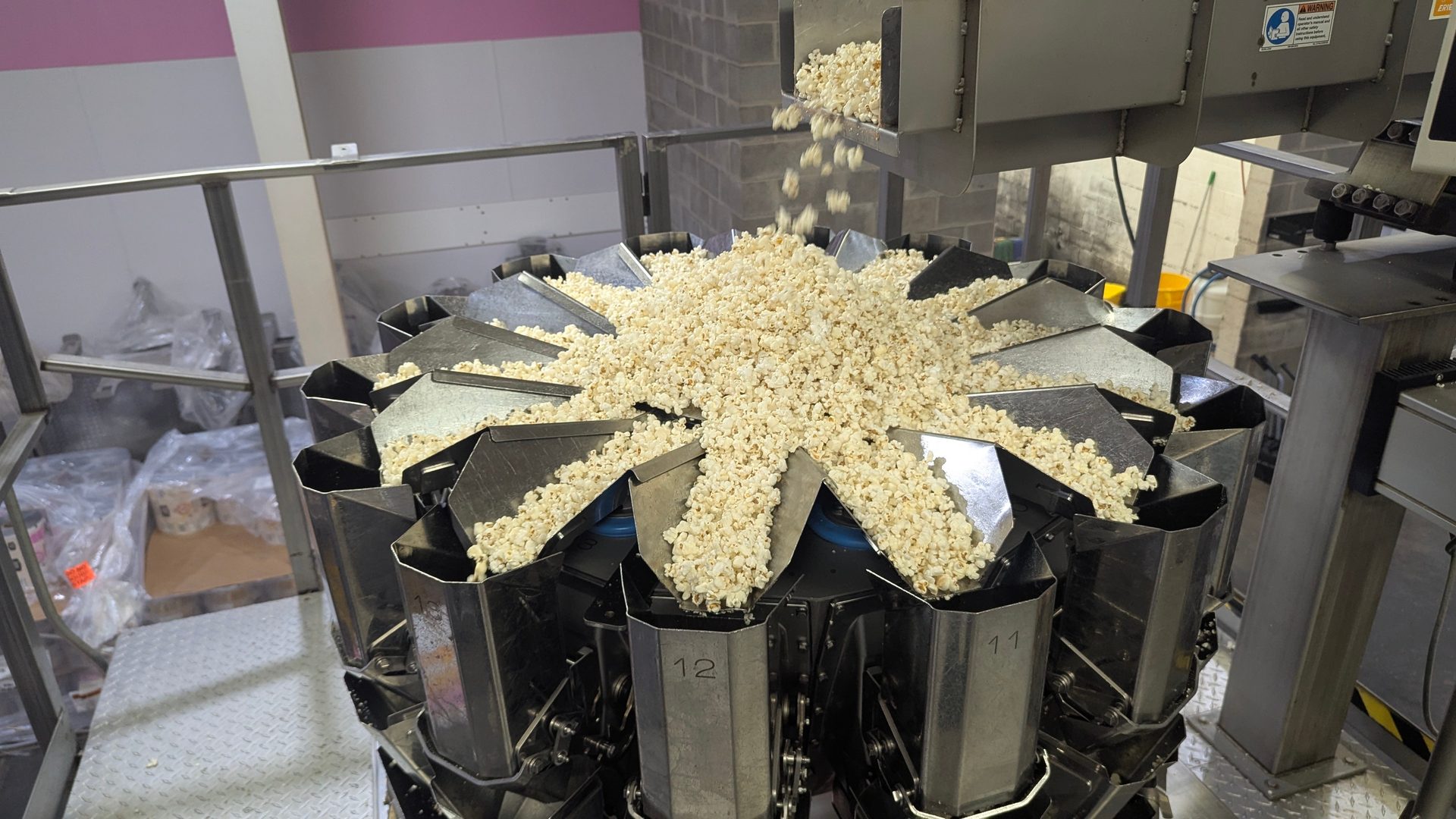 “We run our popcorn machines very inefficiently, because we want to run them low and slow to get that expansion and that texture,” he explains. “We put a lot of pressure on the kernel as it goes through the popper, and then it basically explodes at the very end; we call it multilateral expansion. It makes our popcorn very different than other people's popcorn.”