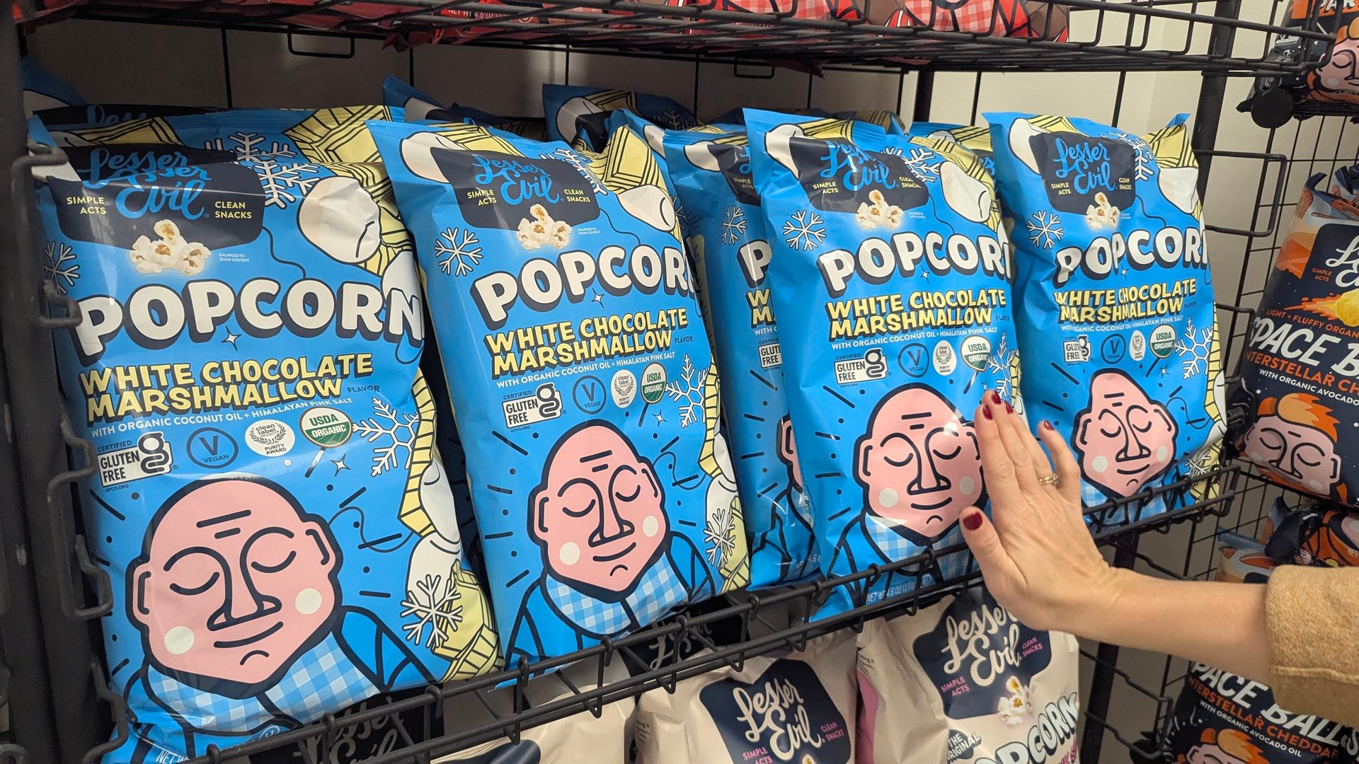 “We’ll be like, ‘I love my lattes—let’s see if we can do a latte popcorn," just weird stuff like that,” he laughs. “Nielsen or SPINS say that you need to have a sweet, you need to have a cheese, you need to have a salty, you need to have a spicy," but all the rest of the stuff is all just internal.”